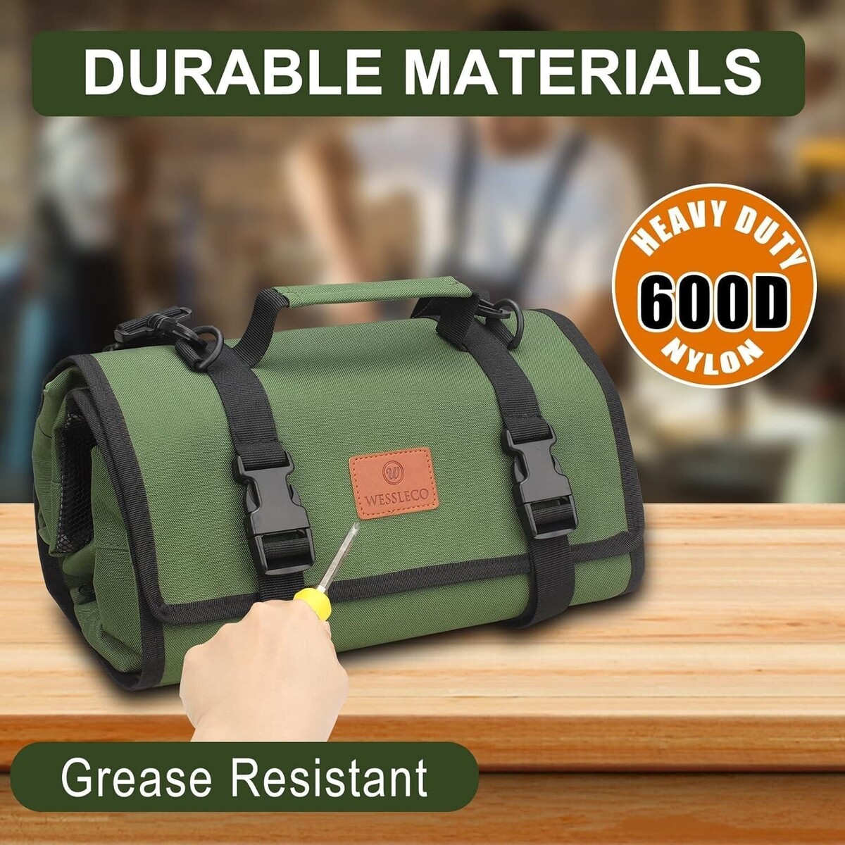 Well Made:Tool roll pouch is made of sturdy 600D nylon material, lightweight, with removable hook and loop for efficient storage and carrying of your tools