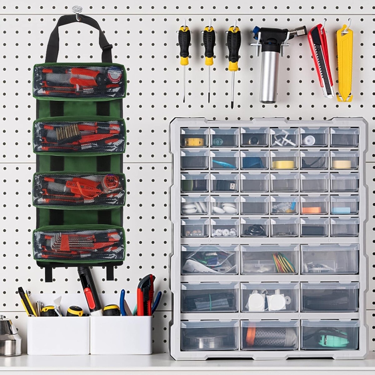 Easy Access:4 clear zippered pockets to organize your small pillers, wrenches,screwdrivers, sockets, pliers and vice grip, tire gaugesor flat tools, keep all your sockets organized and helps to access tools easily and quickly