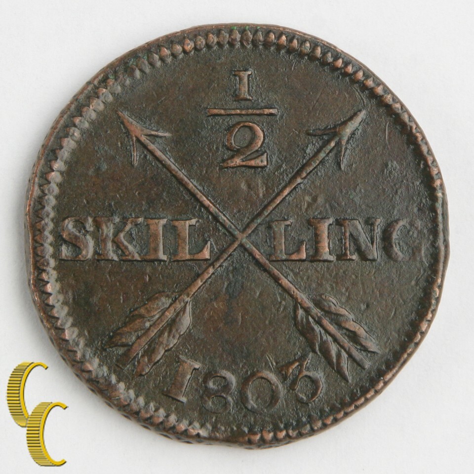 1803 Sweden 1/2 Skilling in XF Condition, KM# 565