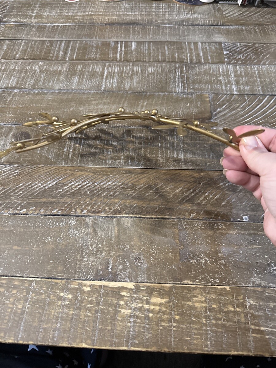 This unbranded gold colored leaf Christmas wall decor is a beautiful plaque/sign perfect for adding a touch of holiday cheer to your home decor. The elegant gold color and leaf design make it a charming addition to any room, especially during the Christmas season. Easy to hang on the wall, this decoration is sure to bring a festive and warm atmosphere to your space.