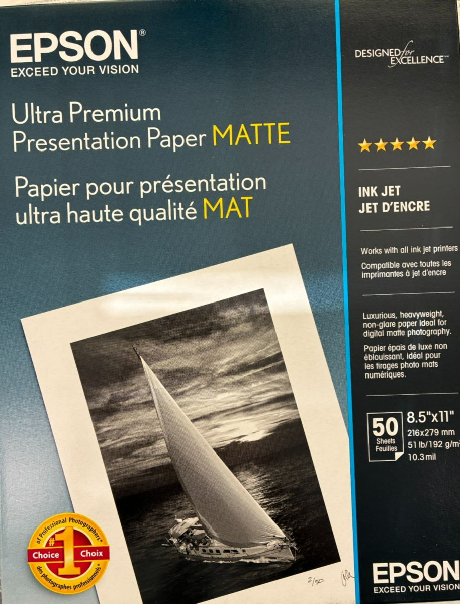 Epson - S041341 - Ultra Premium Matte Presentation Paper 8.5x11 Inches, 50 Shee