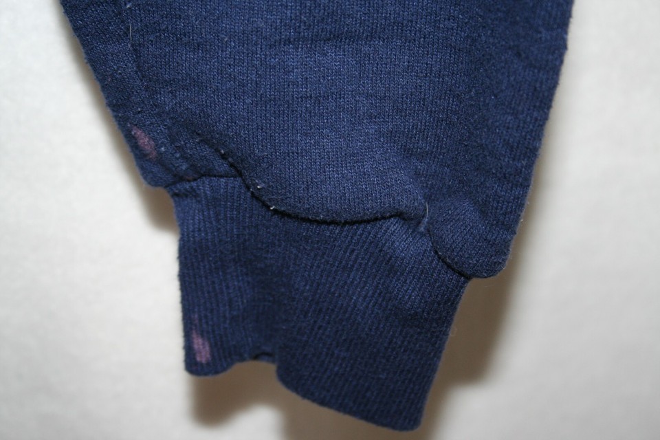 This sweatshirt is in Excellent condition with no holes or tears. There are two small spots on the cuff of one sleeve as pictured.