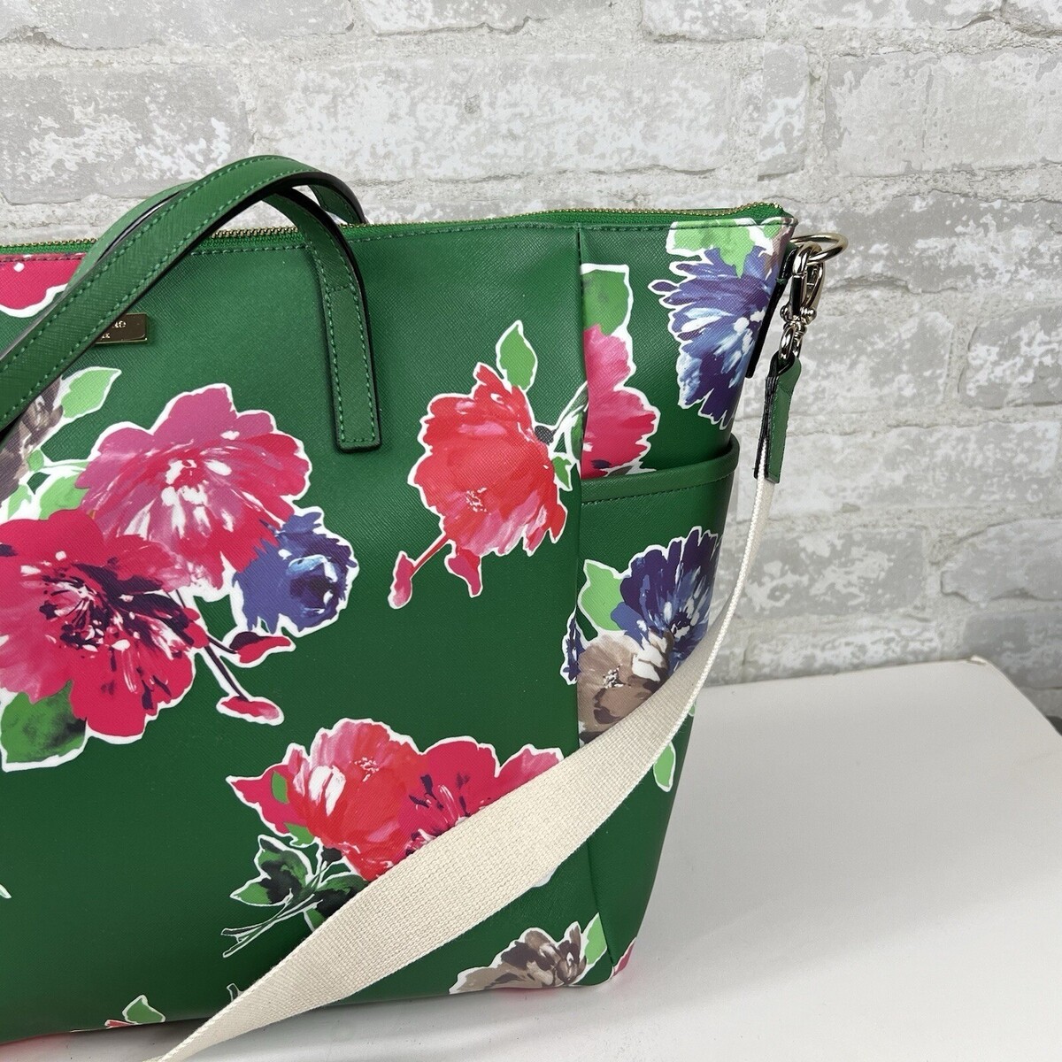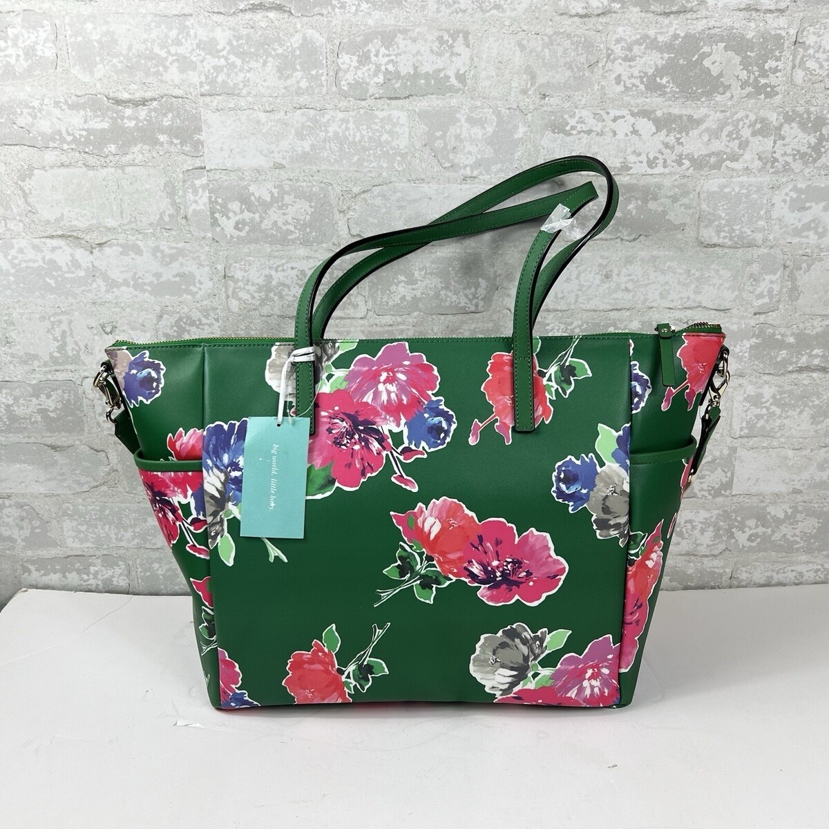 Kate Spade Floral Adaira Baby Diaper Bag Sprout Green w Changing Pad New