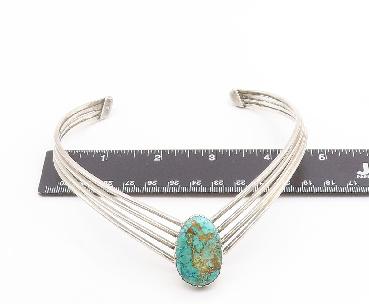 925 Sterling Silver Vintage Necklace NAVAJO Zuni Turquoise Classic Choker NE4808