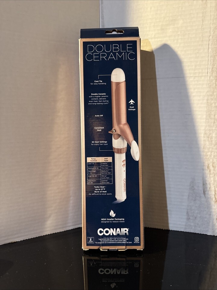 Conair Double Ceramic 1 -1/4? Curling Iron Rose Gold Hair Curl Style Heat Barrel.