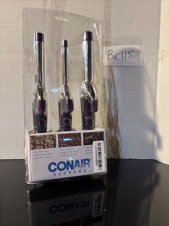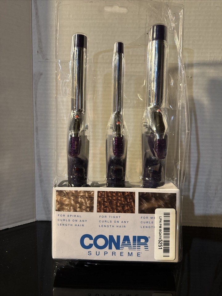 Conair Supreme Triple Value Pack Curling Irons, Purple/Silver, Pack of 3 Irons.