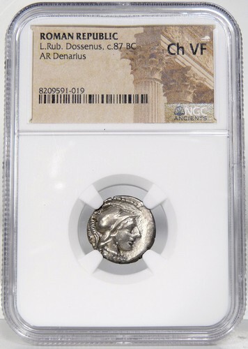 Minted at Rome, c. 87 BC. Silver Denarius. 17mm. c. 4.0g.