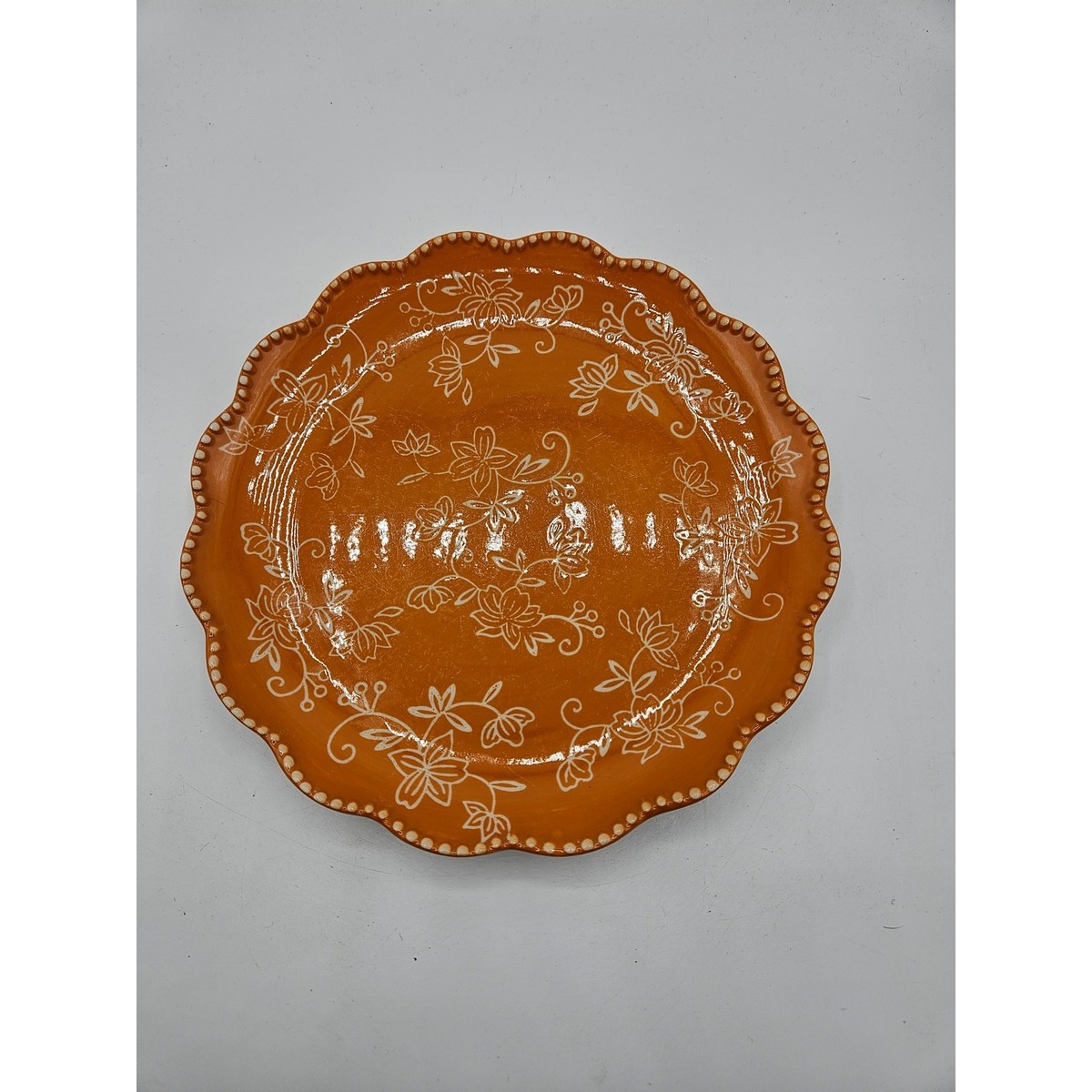 Temptations by tara Floral Lace 8 inch Salad Plate Orange White Scalloped Edges