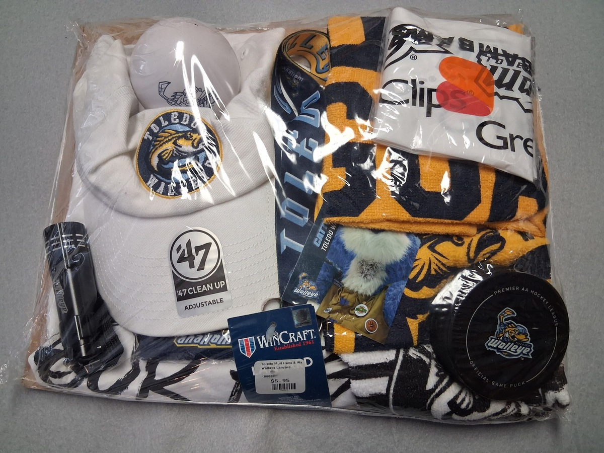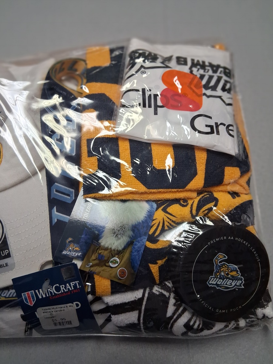 Toledo Walleye Fan Pack Tee-shirt Hat Puck Rally Towels Ball Bam Sticks Lanyard+