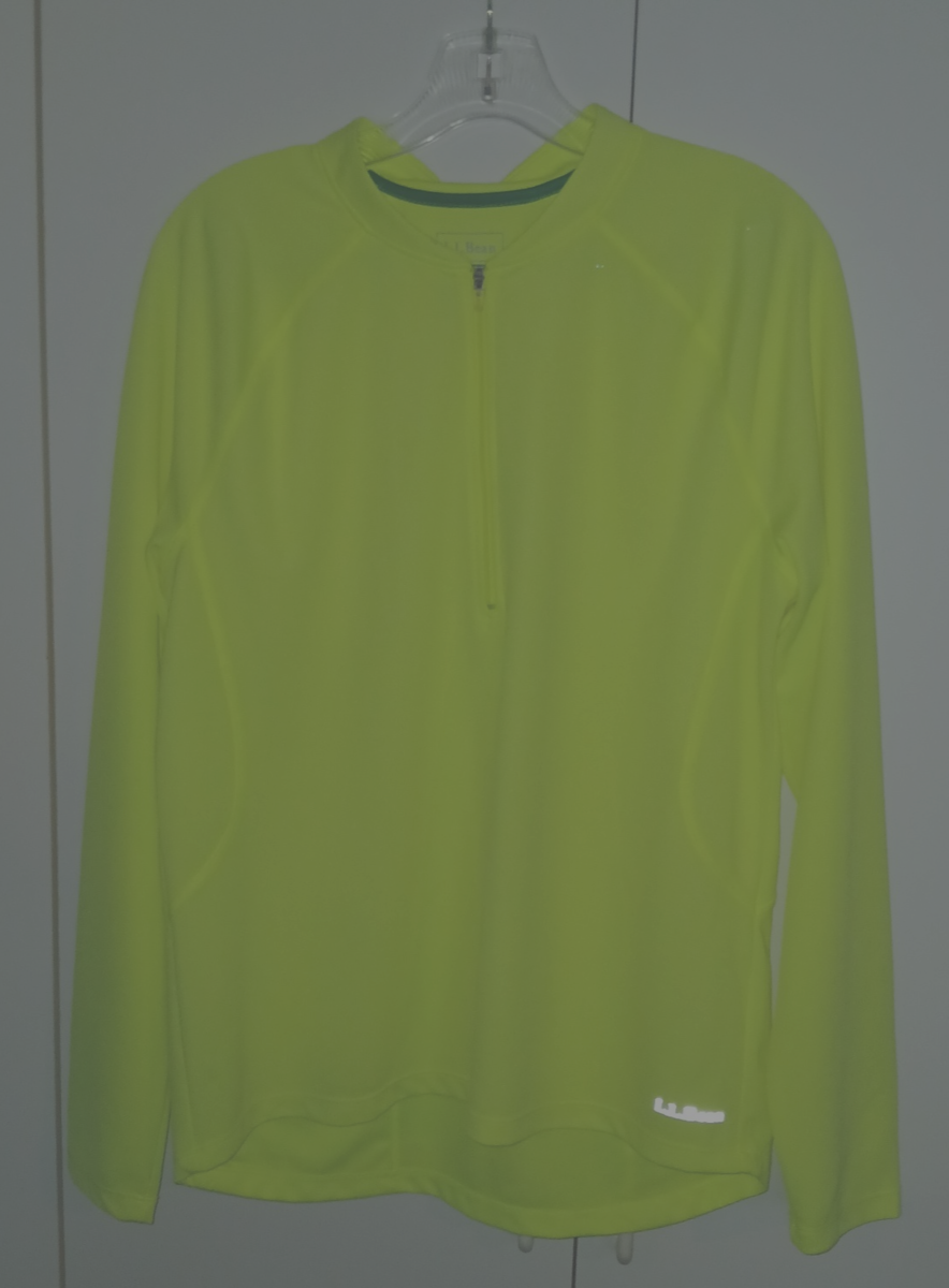 THIS IS A NICE L.L. BEAN LADIES FLOURESCENT YELLOW KNIT POLYESTER PULLOVER TOP IN A SIZE XL. IT IS IN EXCELLENT, WORN ONCE, CONDITION.