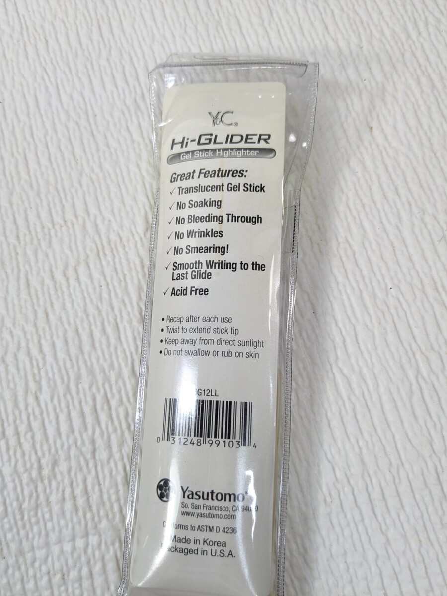 Yasutomo Hi-Glider Gel Stick Highlighters yellow HG12LL set 2 bible markers