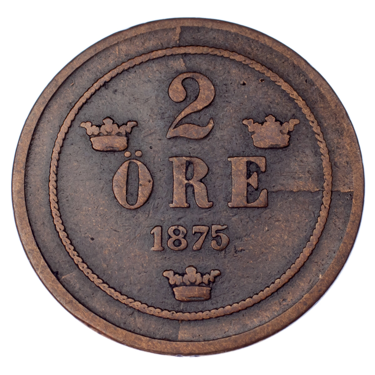 Sweden Lot of 2 Coins (1875 2 Ore VF, 1882 5 and similar items