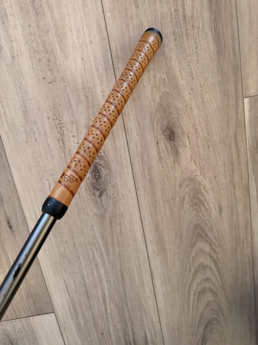 The grip is great. There is a small dent as pictured (last picture) and some scuff marks from normal play. Priced accordingly.