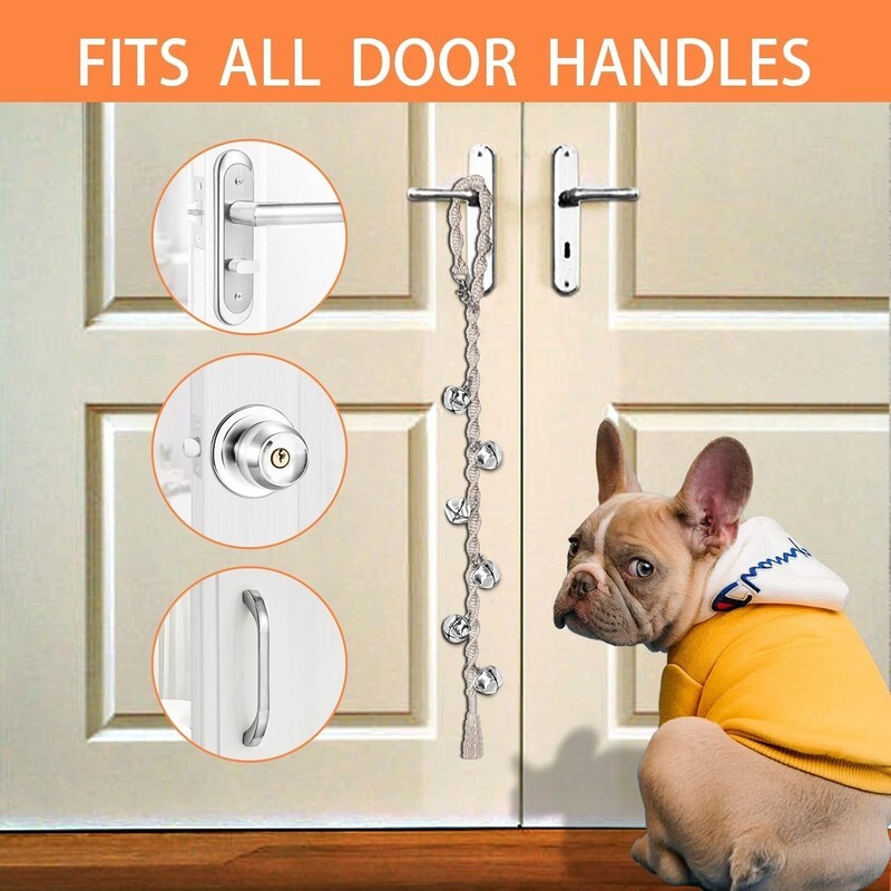?No More Accidents by the Door?Simply follow this functional "Three-Step Easy Training" and take the time and patience to train your dog: 1.Train your dog to touch the training bells with their nose or paw and reward with a treat. 2. Encourage your dog to ring the bell at the door and reward with a treat. 3.Train your dog to ring the bell only when he needs to pee.