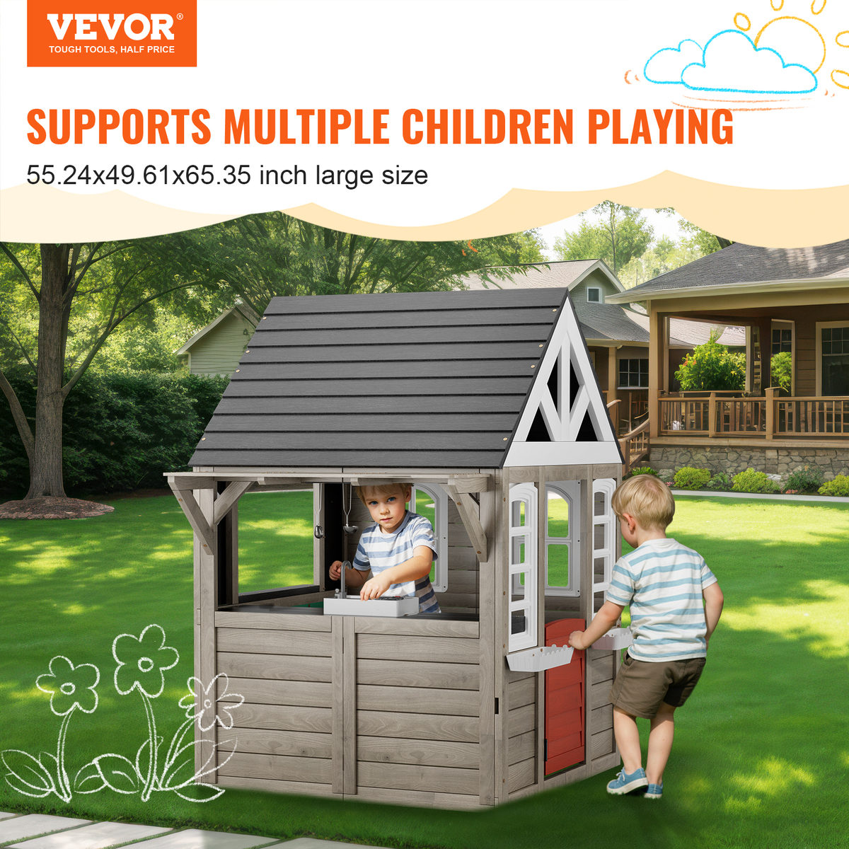 VEVOR Outdoor Wooden Playhouse, Modern Cedar Playhouse, Garden Games Cottage