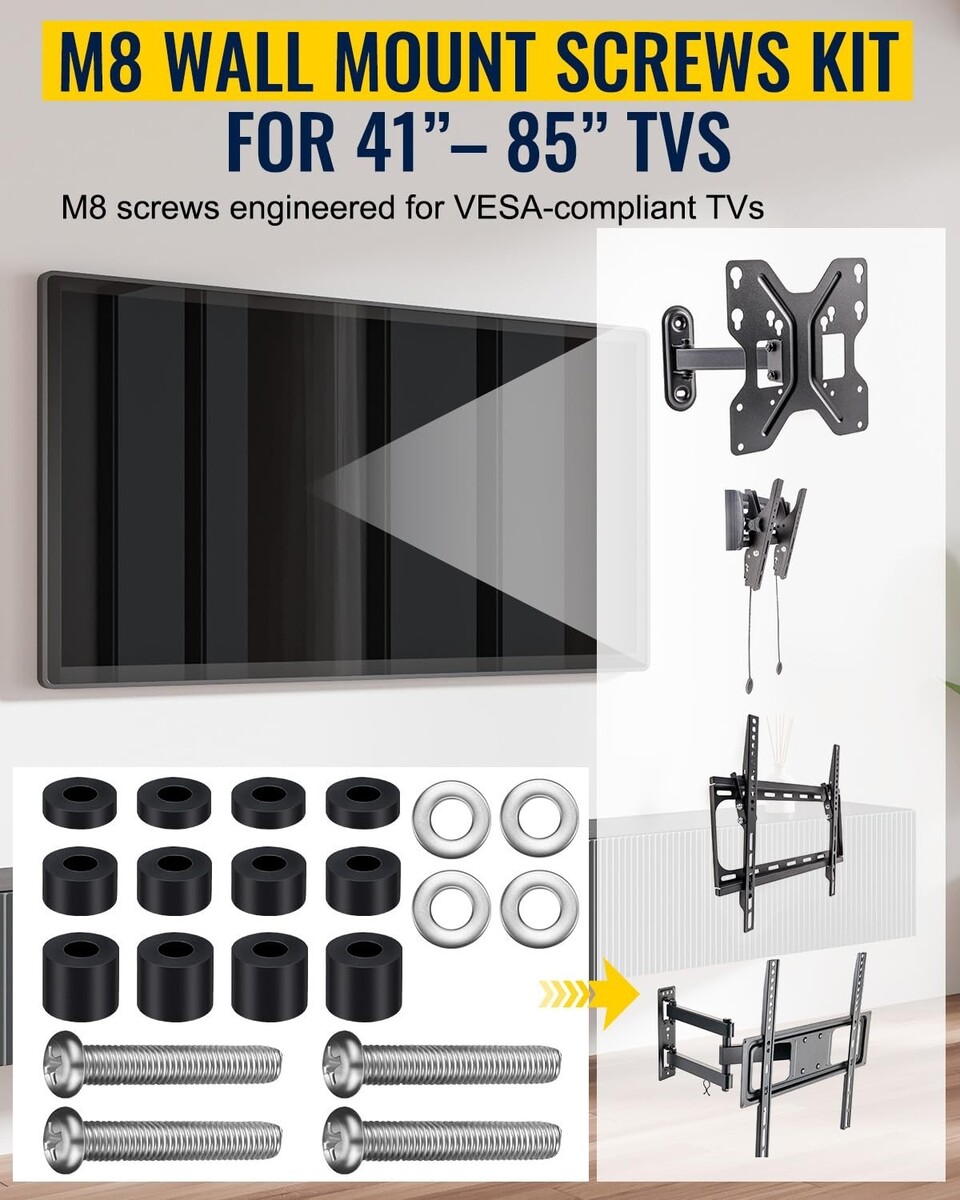 Upgraded M8 Screws Kit for Samsung TV – 45Mm + 6 Length Options, TV Mounting Scr