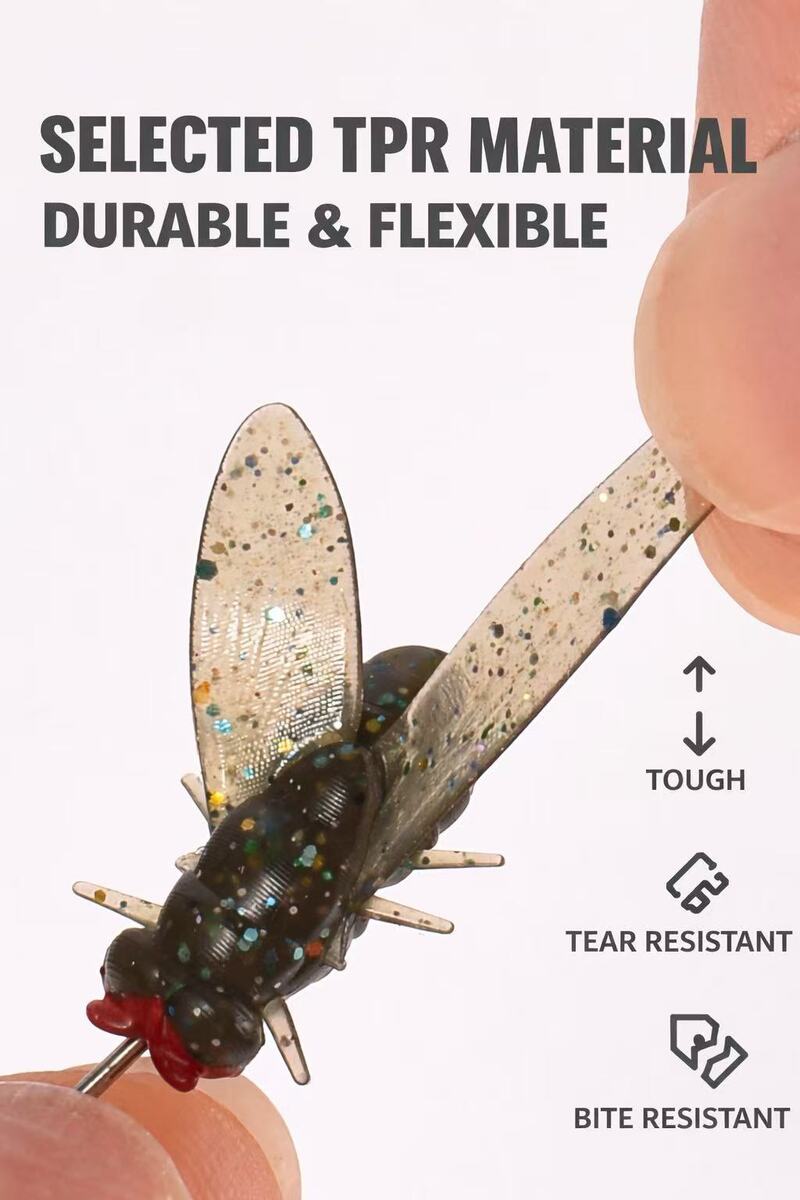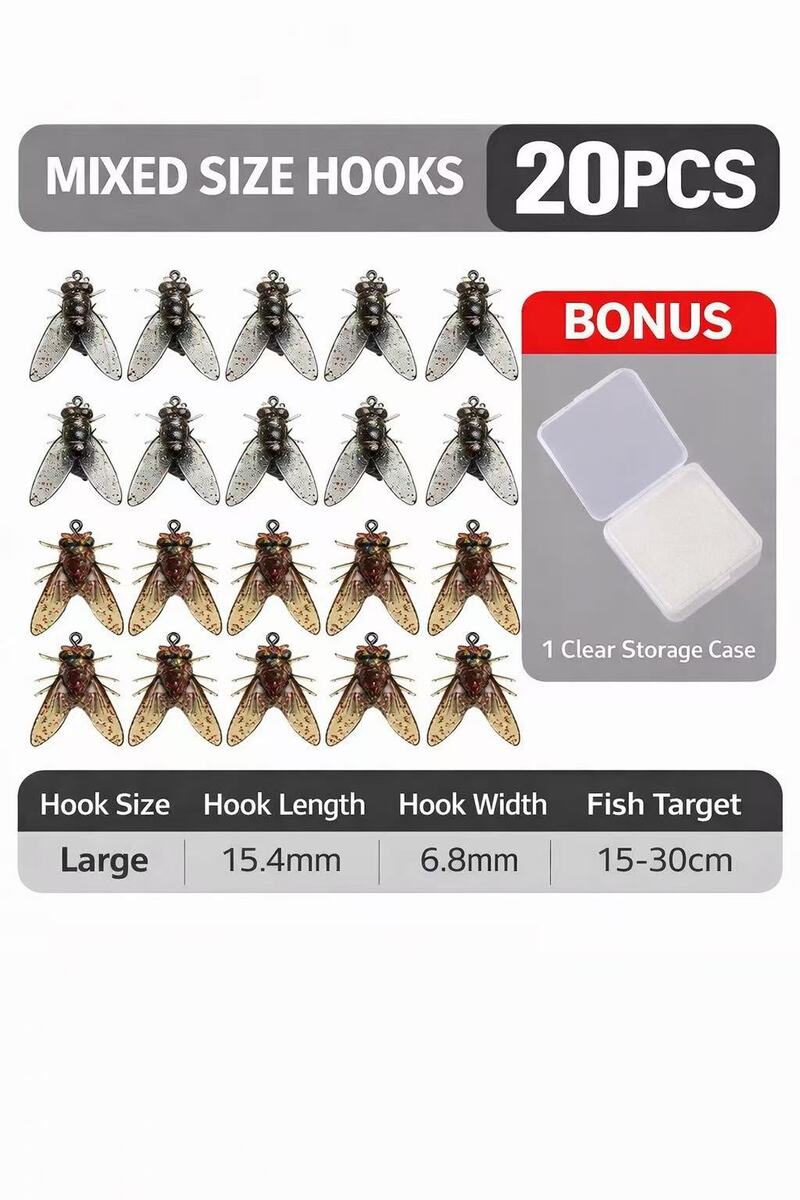 Set of 20 new soft fly fishing lures with realistic insect design.