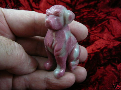 (Internal #Y-DOG-LA-705) You are looking at this cute 2-1/4" tall Labrador "lab" dog carving. Carved in China of PINK/WHITE RHODONITE. New, no defect.