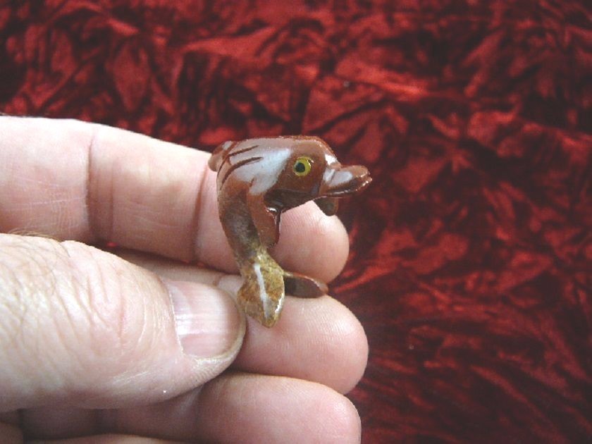 (Y-DOL-9) little red DOLPHIN figurine carving SOAPSTONE PERU I love dolphins