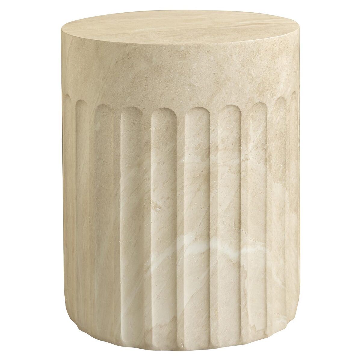 Product description: Add a touch of sculptural style to any space with the LeisureMod Zenvio Side Table! Featuring a solid fiberstone cylinder, scalloped carved grooves, and a sleek water transfer painted finish, this versatile table works perfectly in living rooms, bedrooms, patios, or balconies. Rubber pads protect floors, it supports up to 250 lbs, and arrive fully assembled?ready to elevate your space instantly!