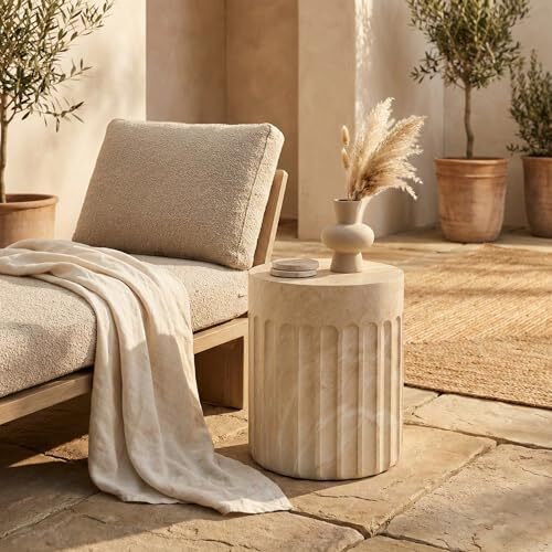 Bullet point: ? Premium Fiberstone Construction - Made from premium fiberstone, this side table combines the strength and texture of stone with a lighter weight, ensuring long-lasting durability for both indoor and outdoor use.