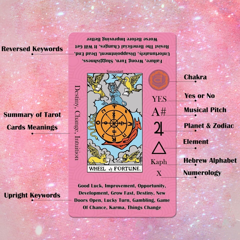 [Easy To Use For Beginners] - This tarot contains upright keywords and reverse keywords, elements, planets, constellations, chakras, yes or no, pitch, numerology, hebrew alphabet and other explanations. This helps beginners learn how to use tarot cards more easily.