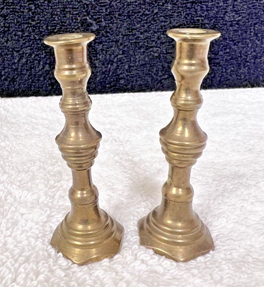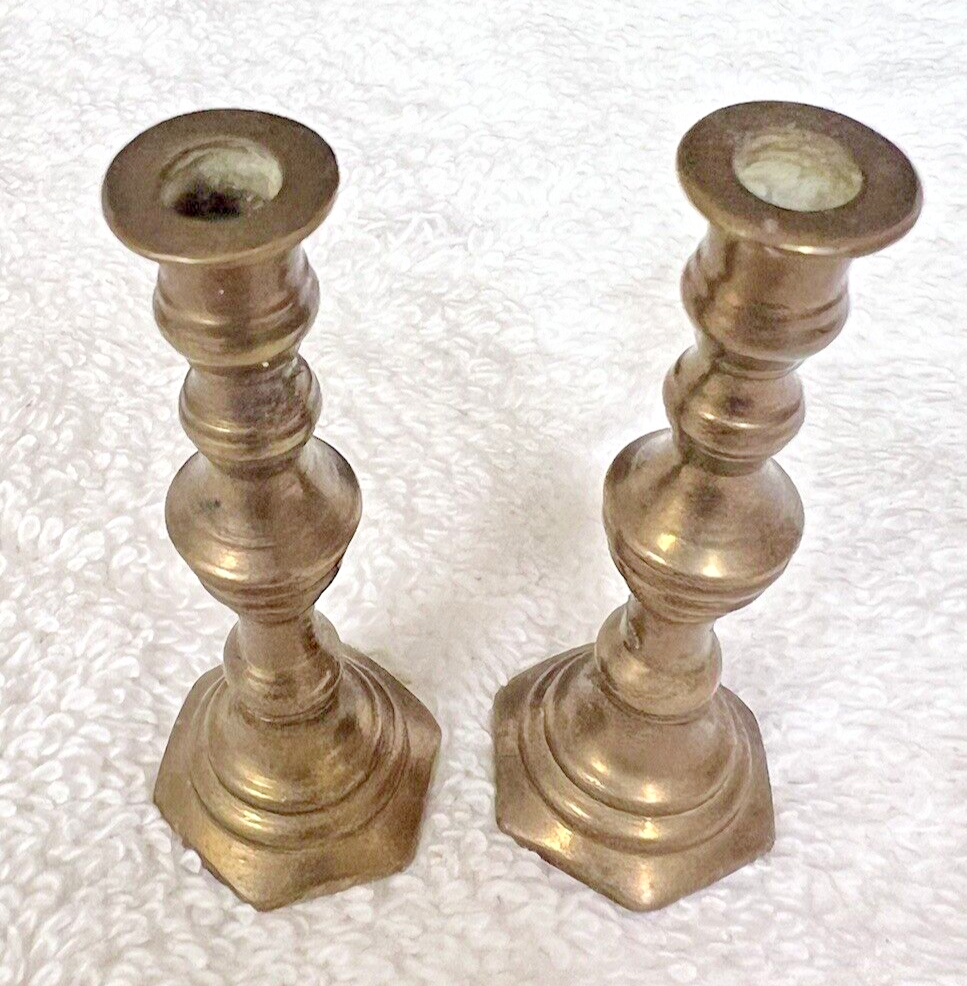 Pair Miniature Brass Candlesticks 2 3/8 Inch and similar items