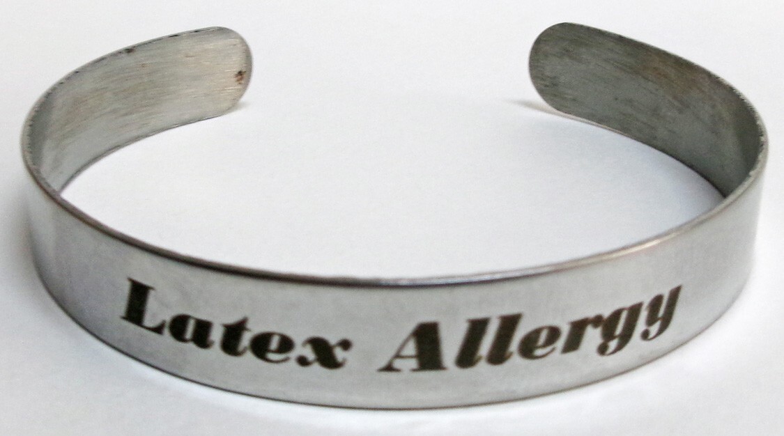 Medical Latex Allergy 3/8" X 6" Silver Aluminum Bracelet, Free Shipping.