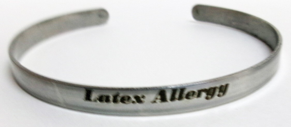 Medical Latex Allergy 1/5" X 6" Silver Aluminum Bracelet, Free Shipping.