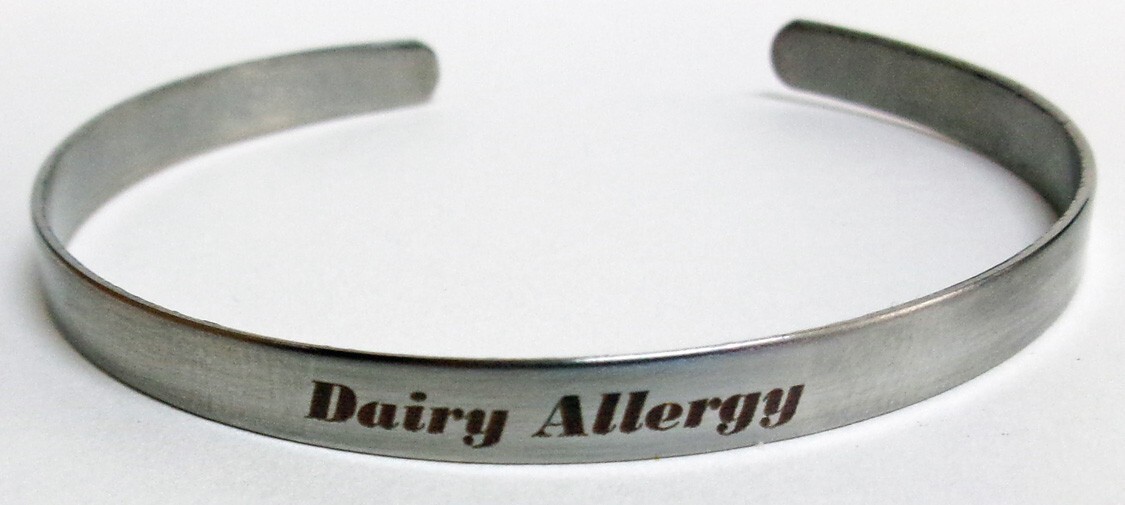 Medical Dairy Allergy 1/5" X 6" Silver Aluminum Bracelet, Free Shipping.