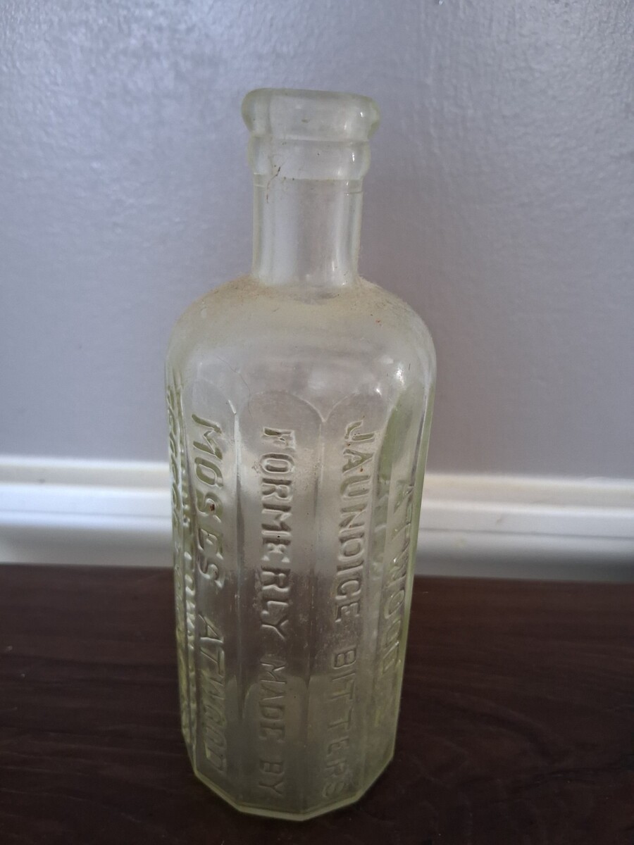 Atwoods Jaundice bitters bottle - moses atwood- georgetown, Mass- antique meds
