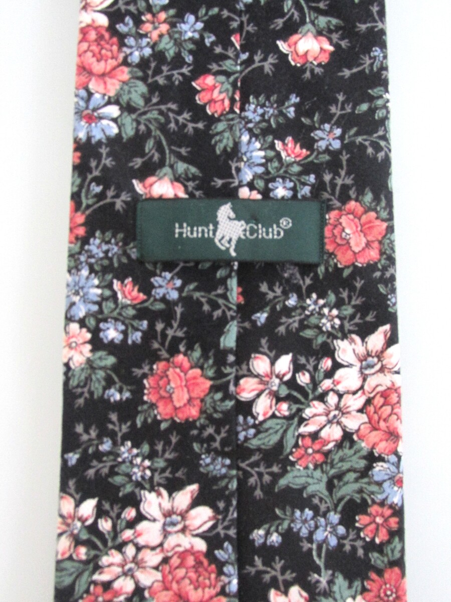 Description: Up for sale is a Hunt Club men's cotton floral tie. It is handmade in Portugal of 100% cotton. The dimensions are approximately 56" long x 3.90" wide. The tie has a multicolored colorful floral pattern in pink, blue, lavender, green white on a midnight blue background. This tie is in excellent condition.