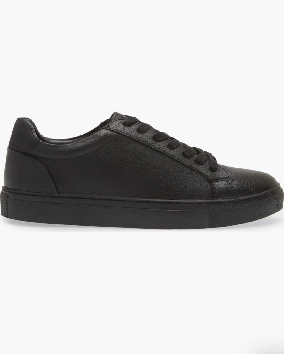 Kenneth Cole Reaction Men Tedder Black Sneakers A faux-leather finish brings polished appeal to this low-top sneaker for all your casual looks. Synthetic upper and lining/rubber sole