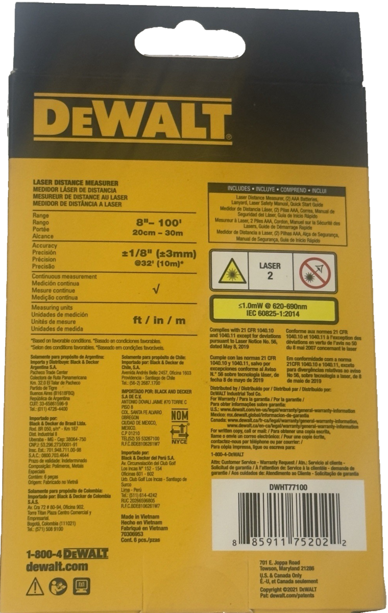 DEWALT 100 ft. Laser Distance Measurer, (DWHT77100) New With Free Shipping