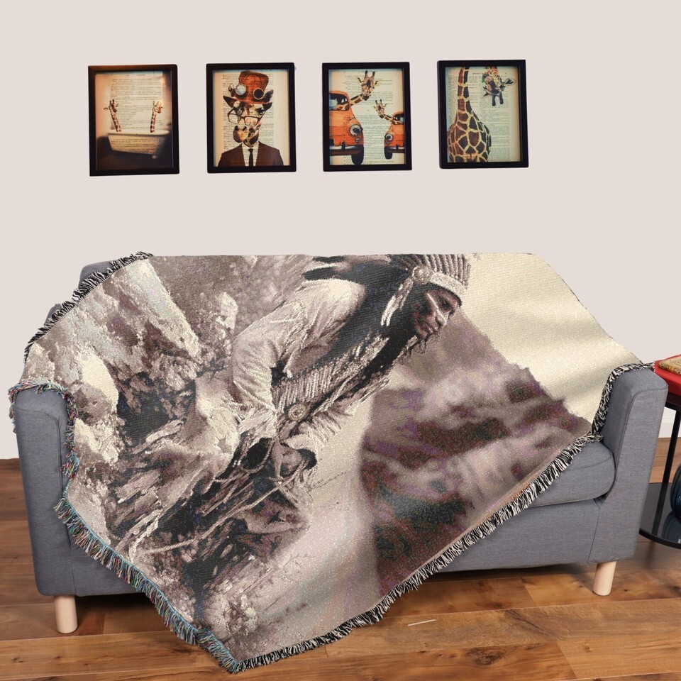 Proud Native American Woven Blanket Throw Tapestry Indian Western Tribal Decor
