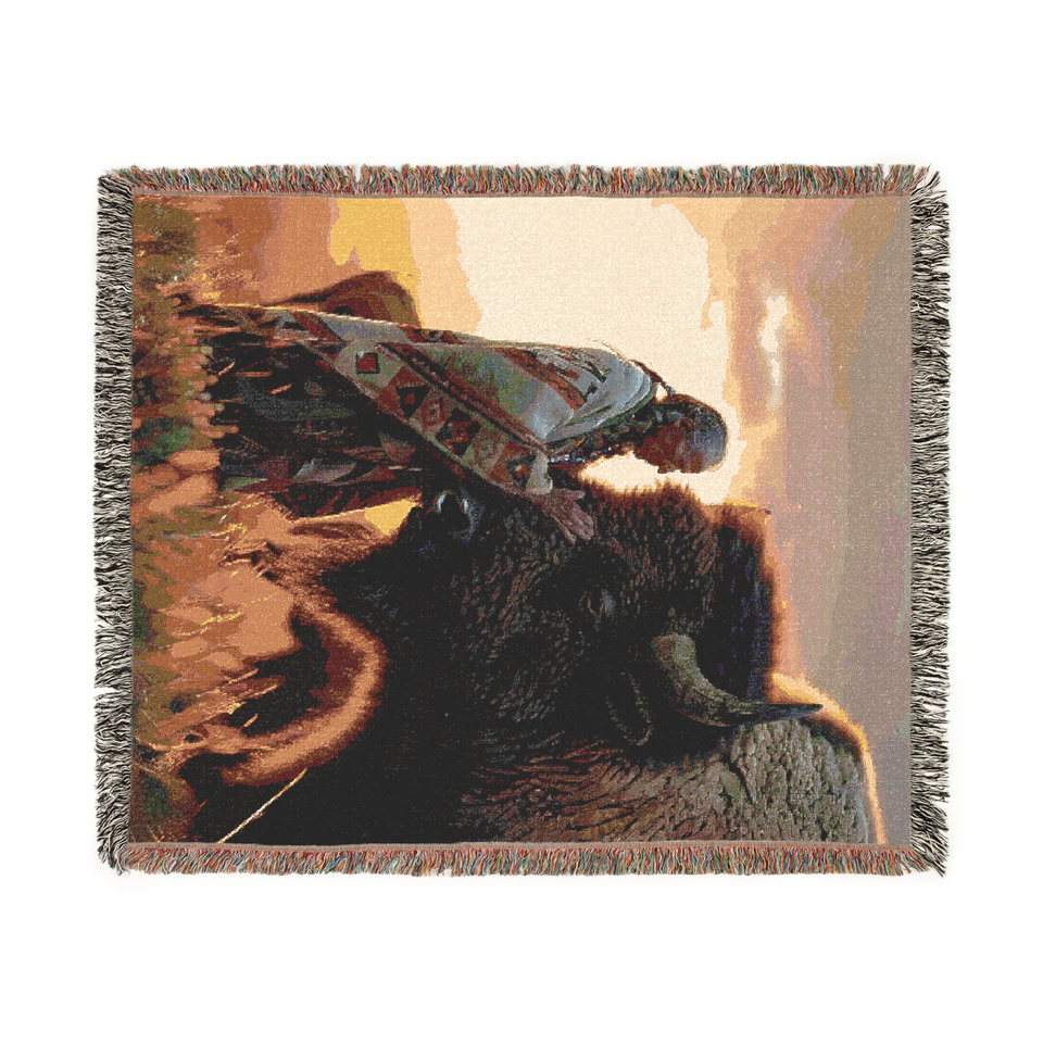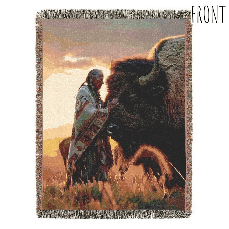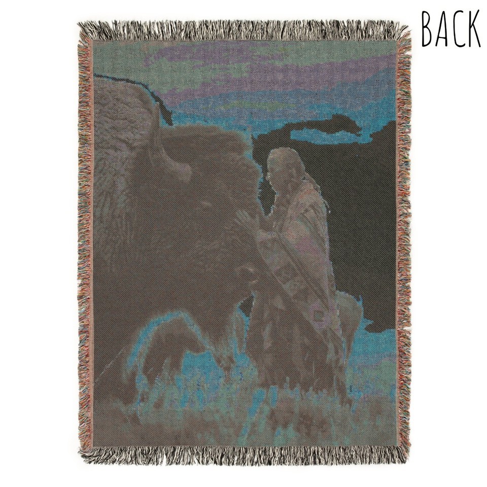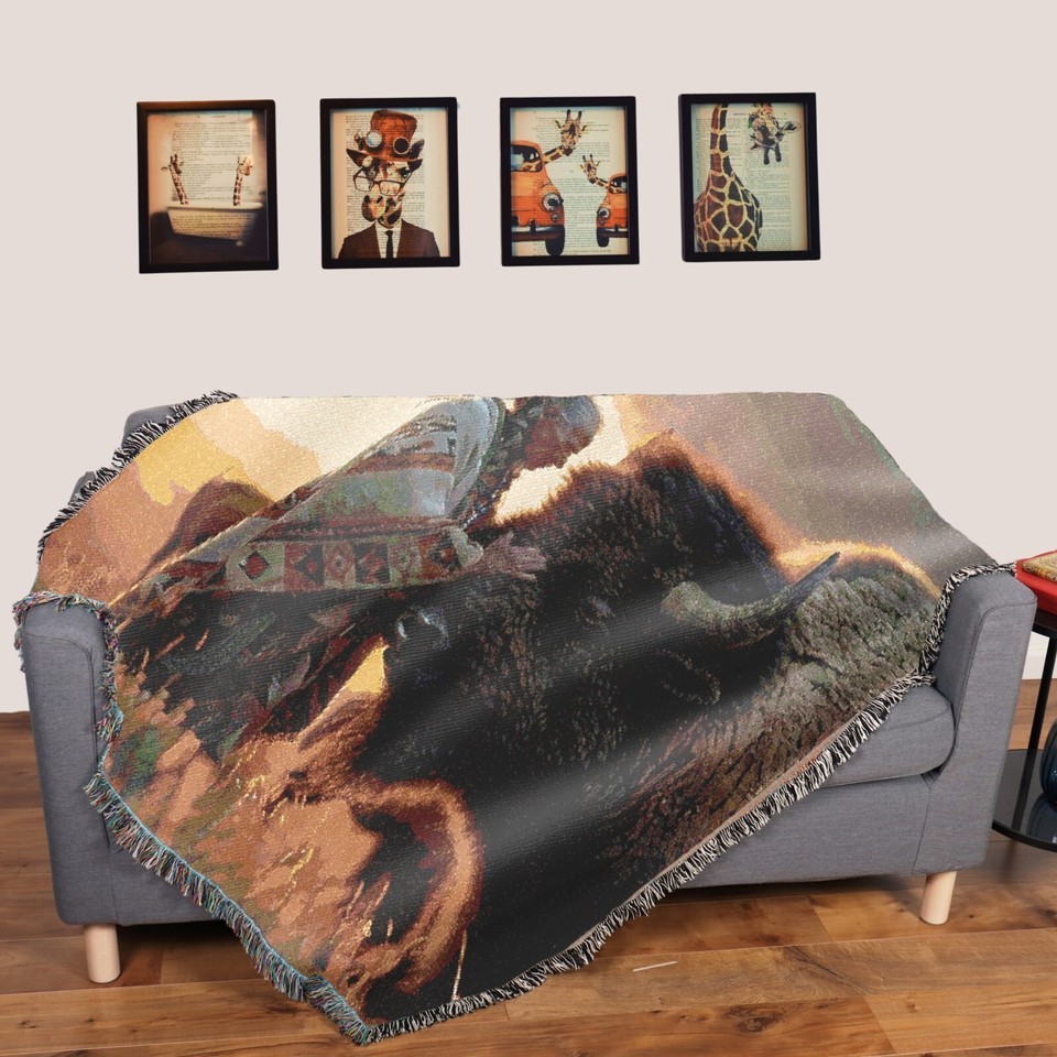 Native American Woven Blanket Throw Tapestry Bison Western Tribal Lodge Decor