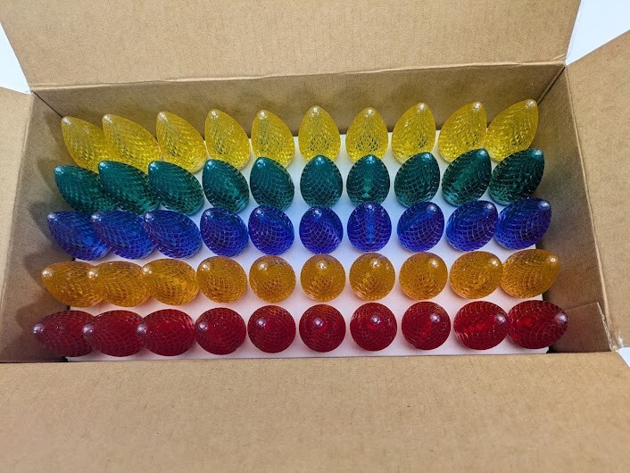 50 Multi-Colored Commercial Grade Shatter-Resistant Faceted C9 LED Replacement Bulbs