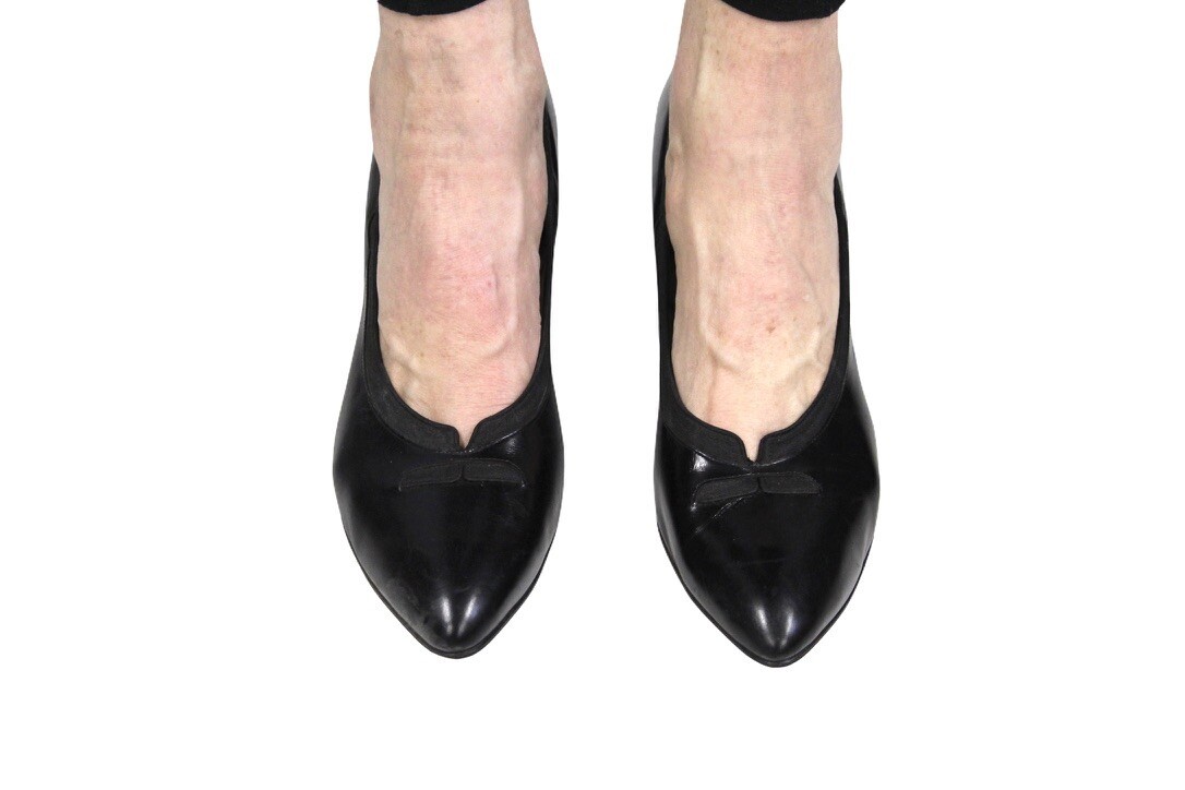Vtg Enna Jetticks Black Leather Women's Shoes Pumps 10.5 A/AAA Med Heel NWOB 60s