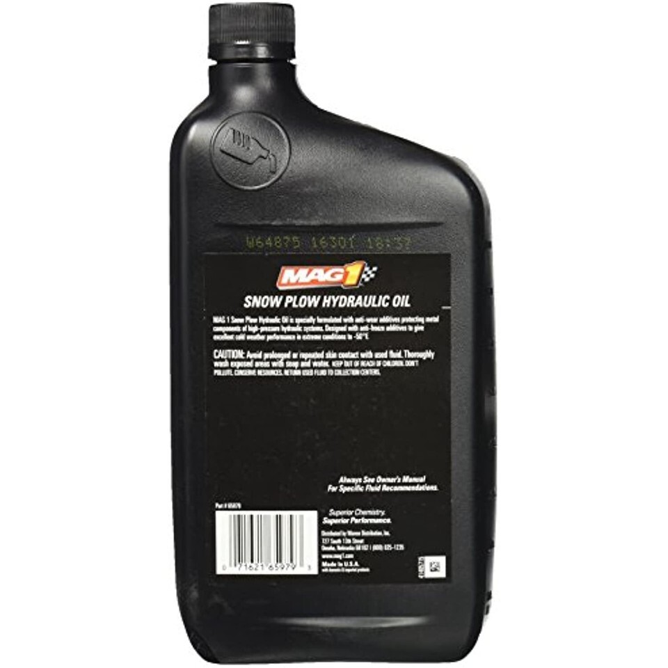 Mag 1, QT, Snow Plow Oil, Full Synthetic ISO 22 Hydraulic Oil With A Pour Point Of - 50 Degrees. Manufactured in the United States.