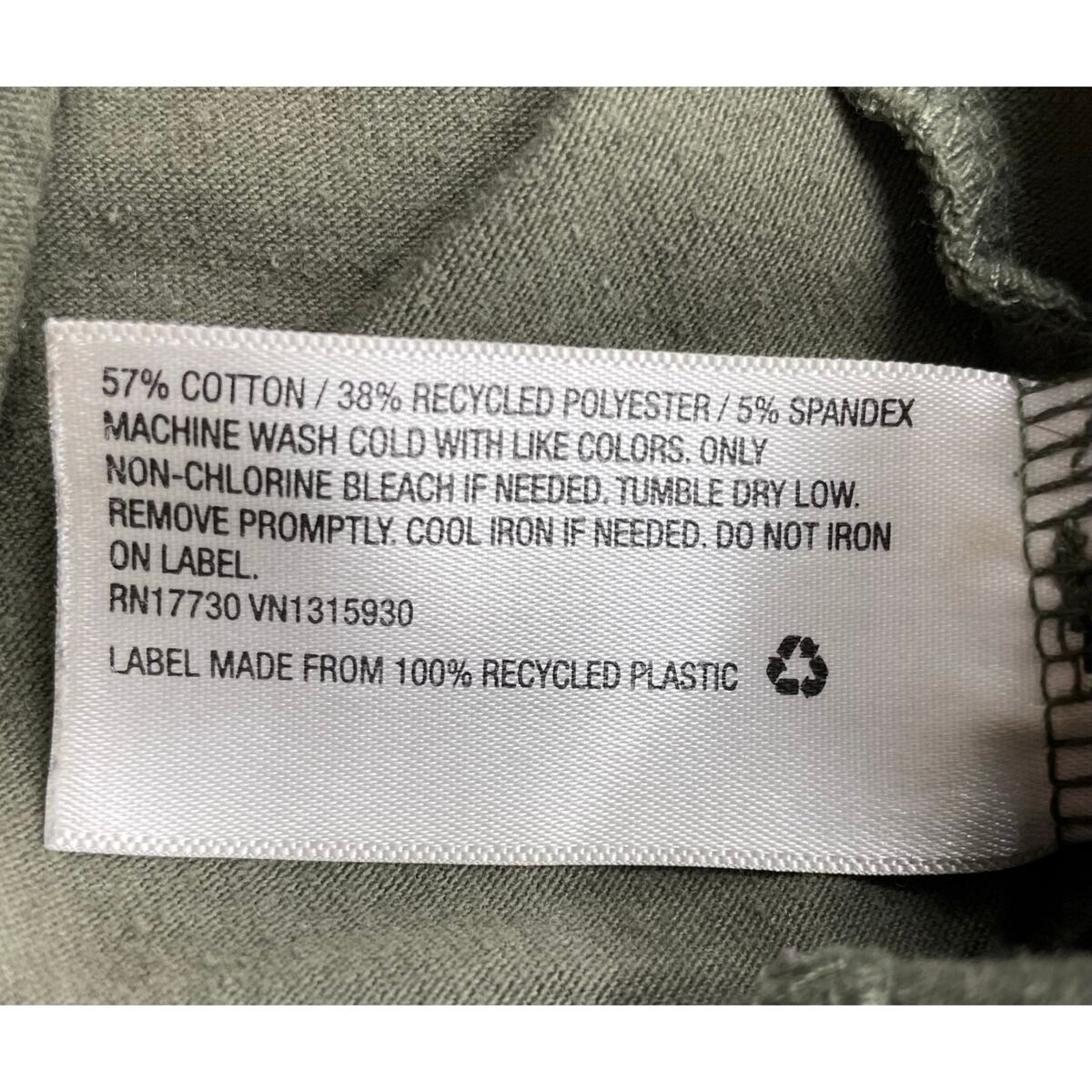 Material: 57% cotton, 38% polyester, 5% spandex