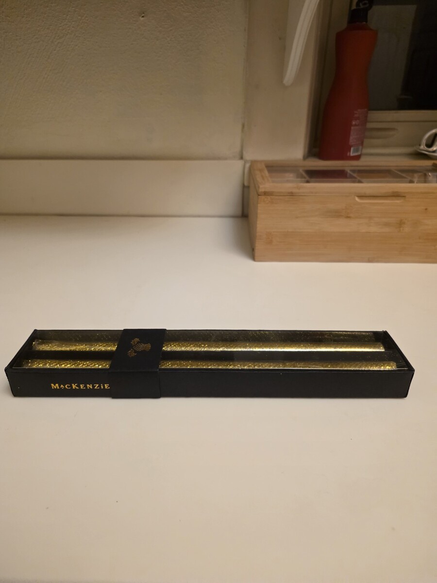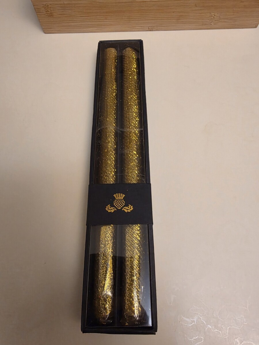 MacKenzie-Childs Glow SHIMMER GLITTER Taper Candles Dinner Set of 2