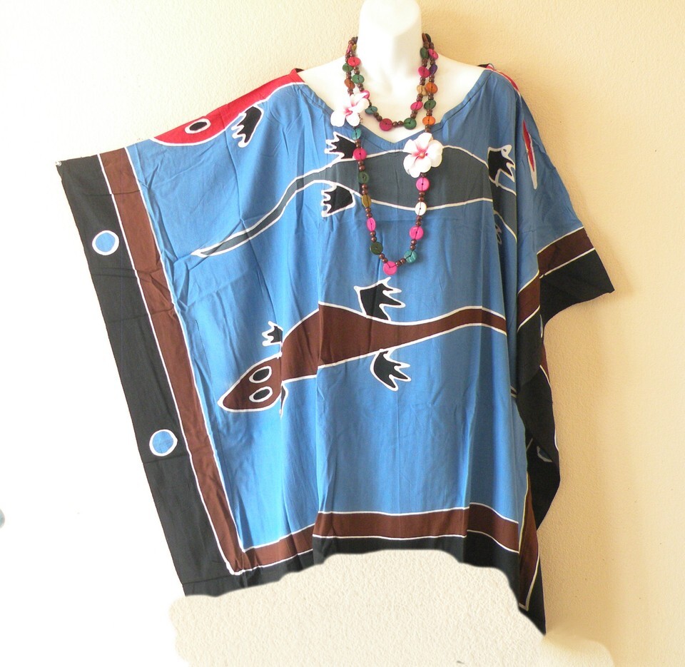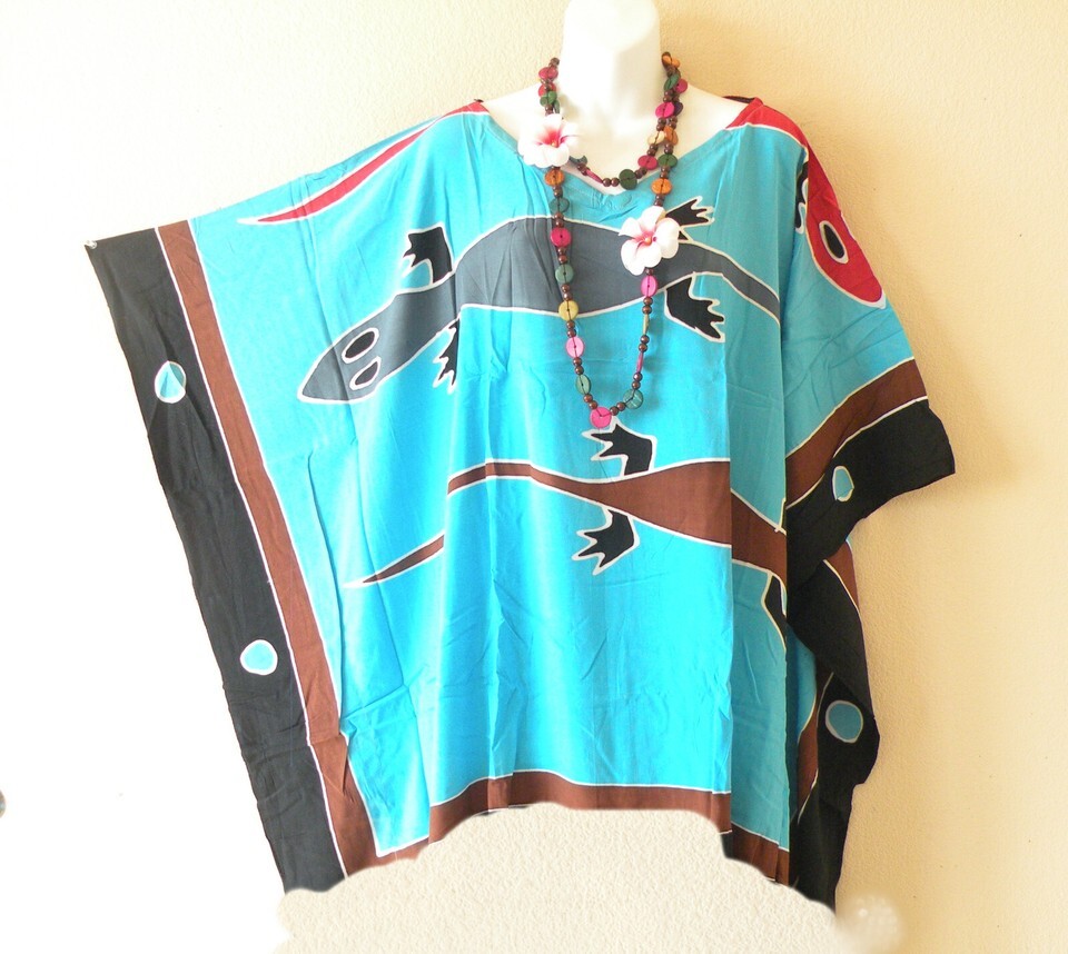 KG77 Gecko Batik Hand Painted Plus Kaftan Poncho VNeck Women Blouse Top up to 7X