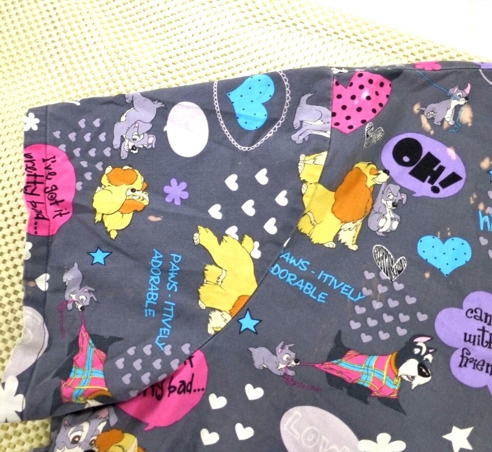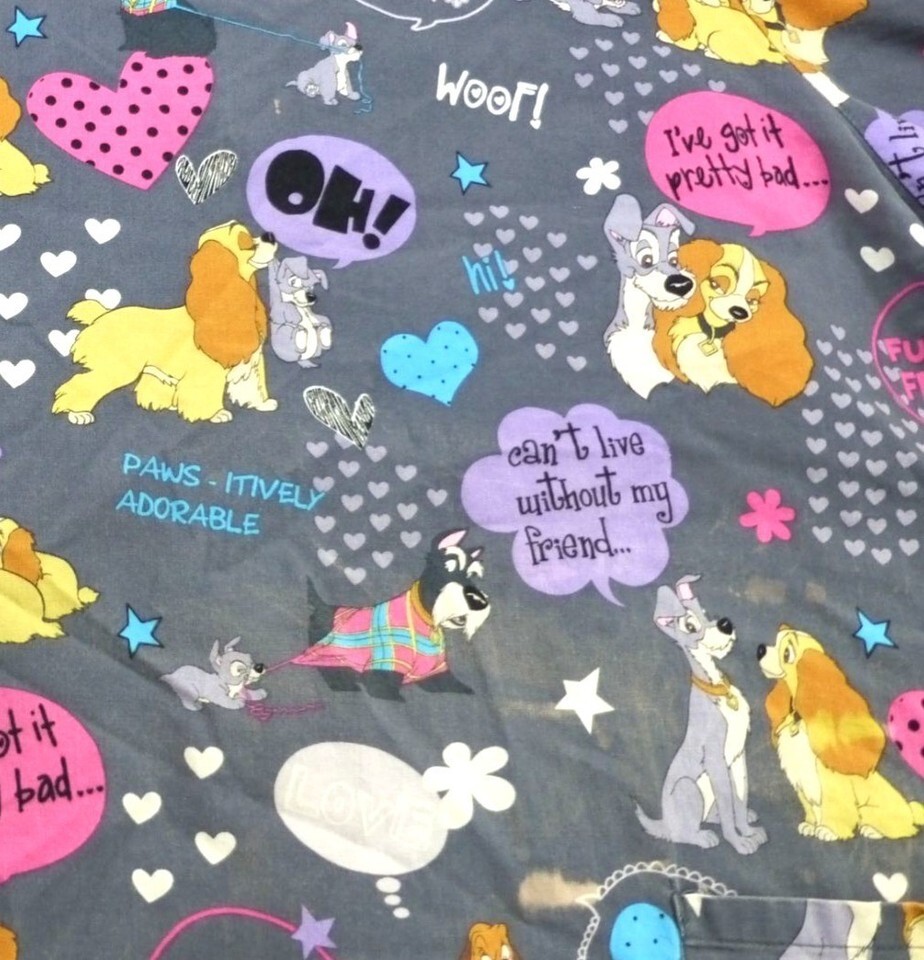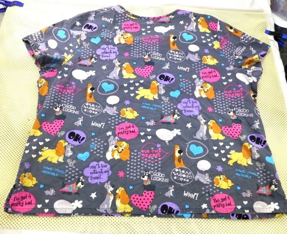 Disney Lady & The Tramp Scrub Top 2XXL Cartoon Print Pockets Short Sleeve Gray