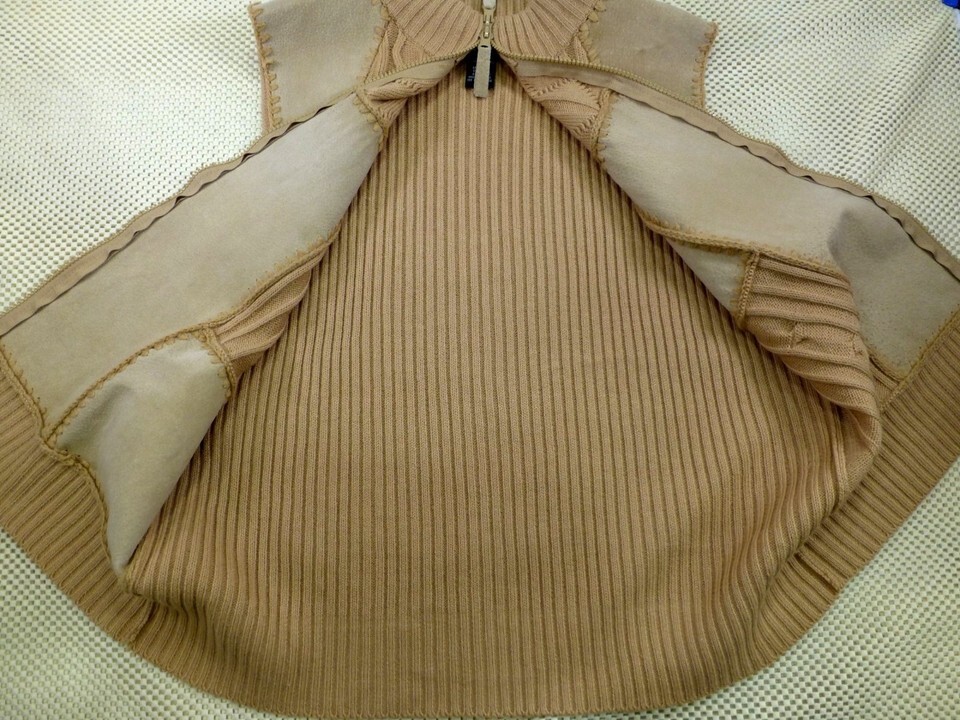 Designer Studio Originals Womens Tan 100% Leather & Knit Patchwork Vest L