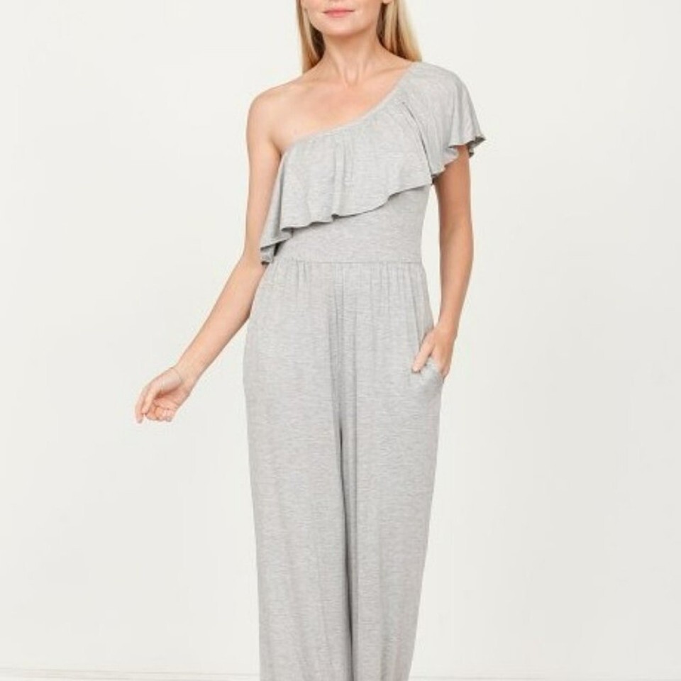 GRAY Asymmetric Ruffle Jumpsuit - Small and 48 similar items