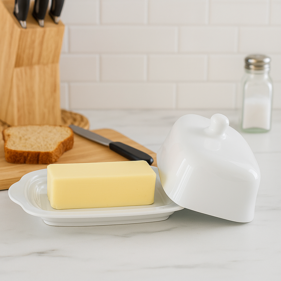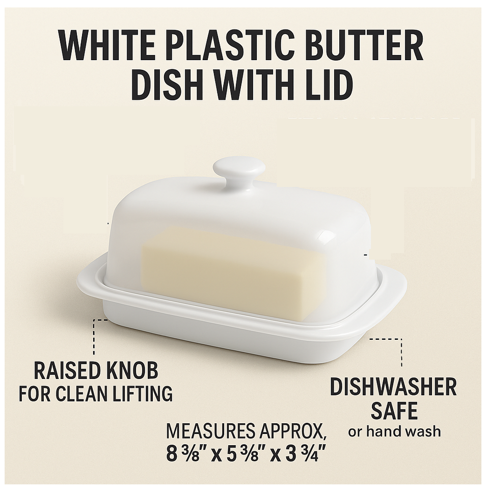 White Plastic Butter Dish with Lid Fits All Stick Sizes BPA-Free Dishwasher Safe