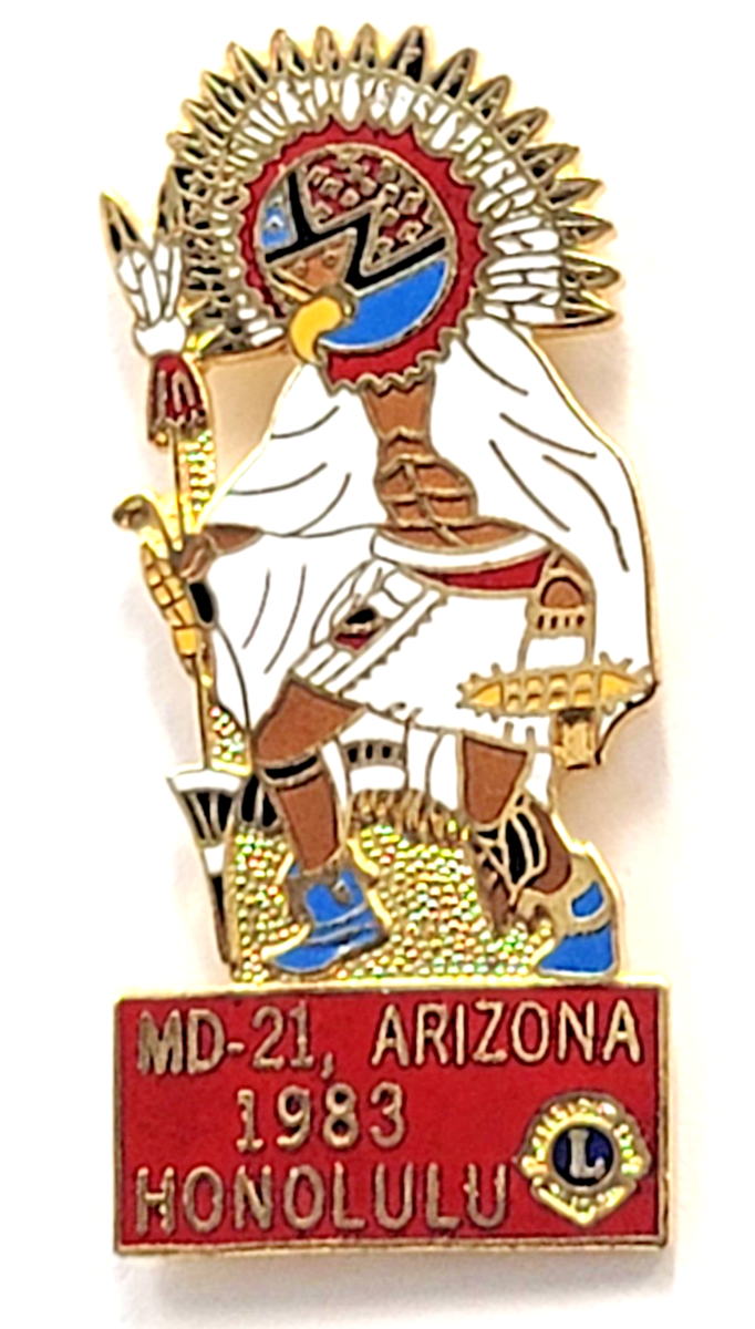 Lions Club MD 21 Arizona 1983 Honolulu Hawaii Kachina Dancer Convention Pin VTG