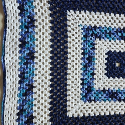 Retro lounge vibe vintage handmade granny square blue knitted crochet afghan throw blanket