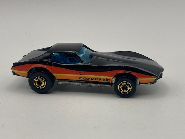 Hot Wheels Corvette Stingray 1975 Black Blackwall Gold Rims Made In Hong Kong Very good over all. Some small chips as shown. Please refer to images.