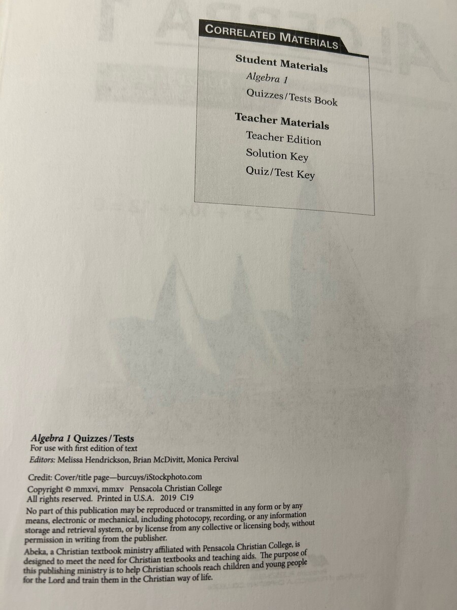 Abeka ALGEBRA 1 Quiz Test Key Math Series and 50 similar items